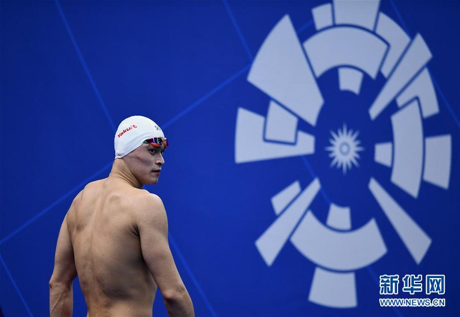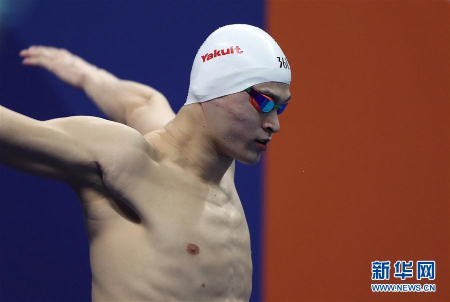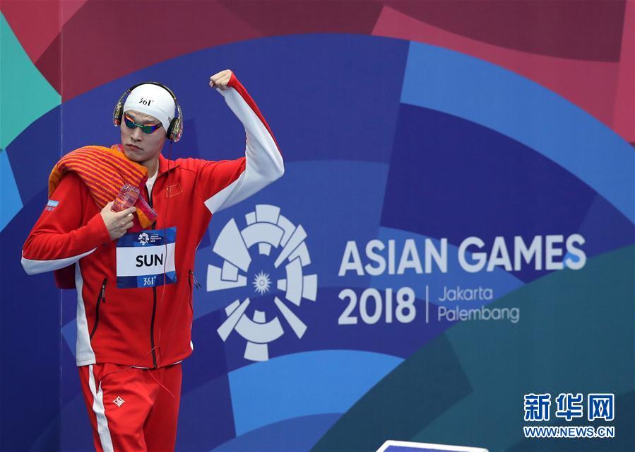 8月20日,中国选手孙杨在比赛前。 当日,第18届亚运会男子800米自由泳决赛在雅加达举行。 新华社记者费茂华摄
