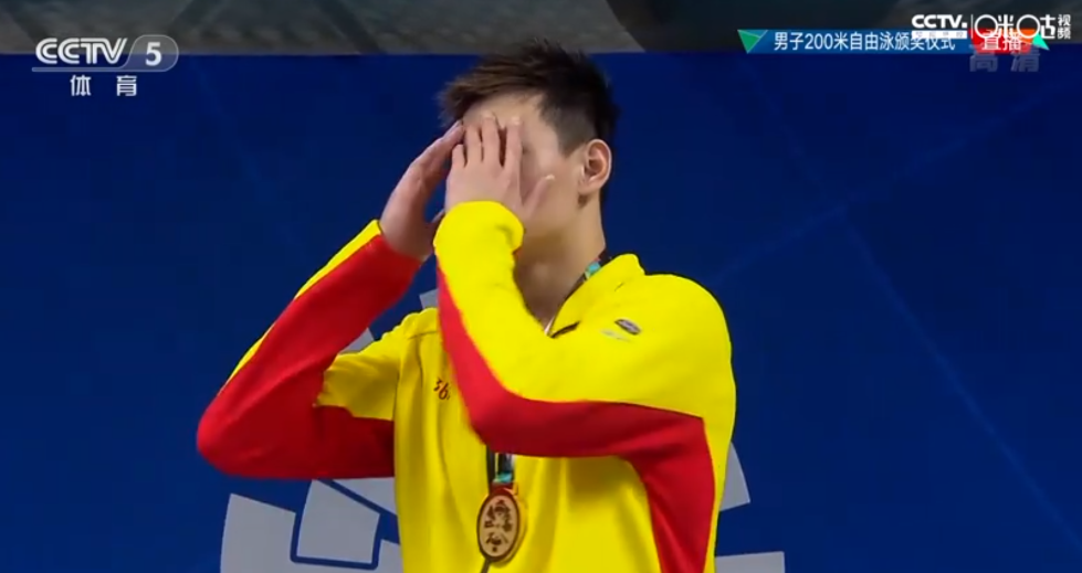 颁奖仪式发生意外 孙杨要求重新升国旗
