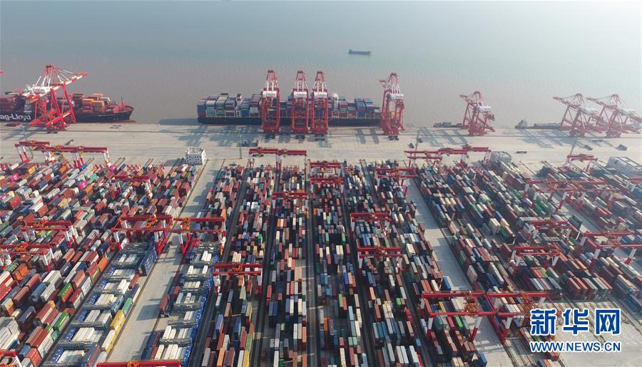 这是上海洋山深水港四期自动化码头(7月25日无人机拍摄)。新华社记者丁汀摄 图片来源:新华网