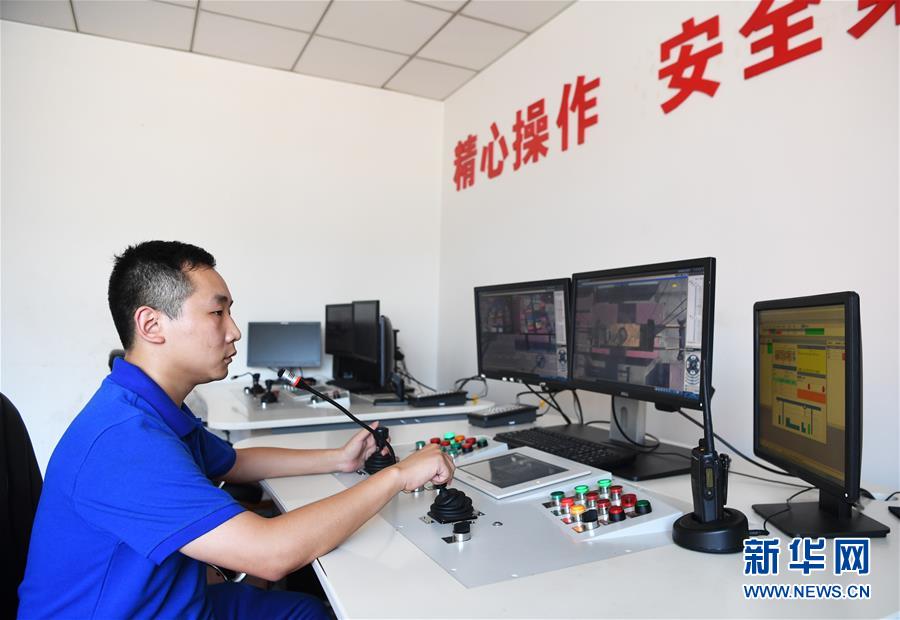 8月20日,重庆果园港工作人员通过智能场桥远控系统进行集装箱吊装作业。 新华社记者王全超摄 图片来源:新华网
