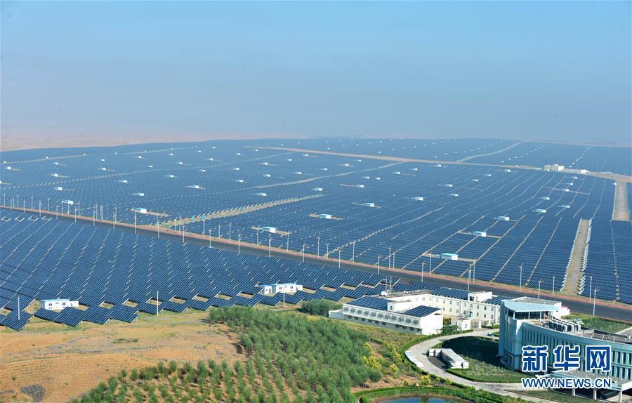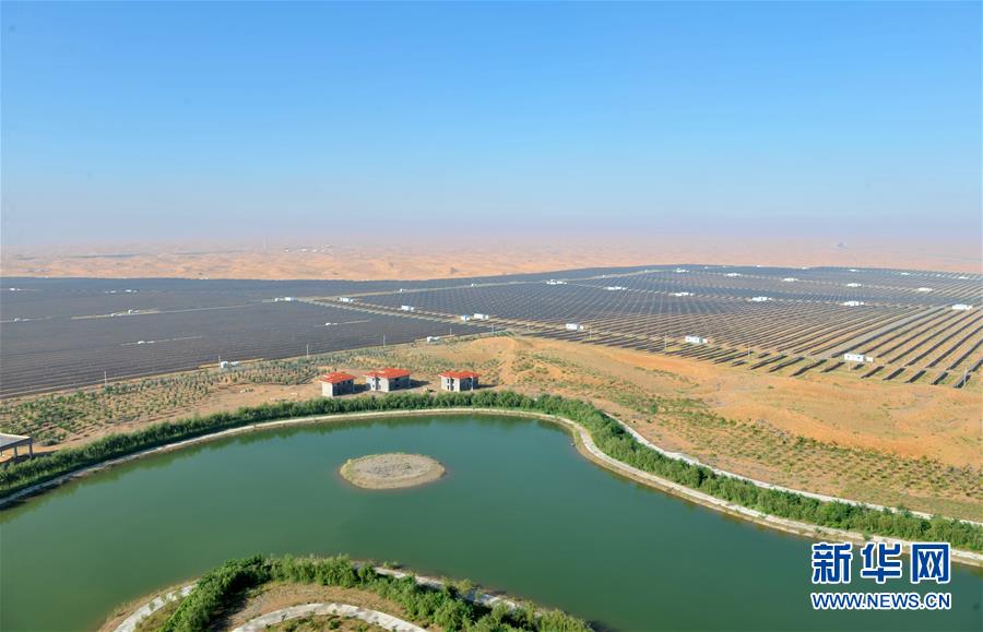 8月22日拍摄的中卫市沙漠光伏产业园。 新华社记者 肖潇 摄