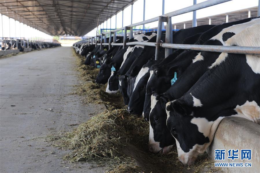 8月22日拍摄的中卫市沙坡头区一家生态养殖基地的牛棚。该养殖基地经改造沙漠建成,占地500余亩,目前已发展葡萄种植、肉牛、奶牛养殖等产业。新华社记者 任鹏飞 摄