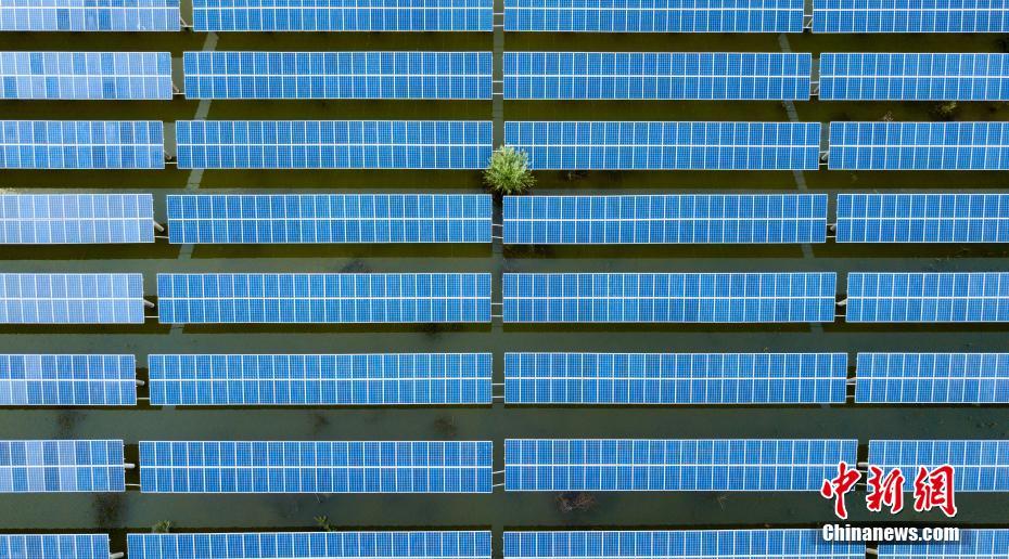 5月17日,江西省新余市分宜县70兆瓦“渔光互补”光伏电站气势恢宏,周边滩涂湿地引来鱼跃鸟飞,景致如画。当地利用电厂2000多亩废弃灰坝,投资6亿元人民币建起“渔光互补”光伏电站并实现并网发电。往昔煤灰堆积的灰坝成为一处和谐绿色的生态休闲之地。中新社记者王剑 摄