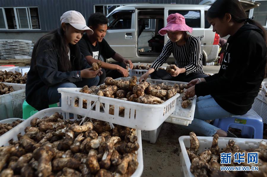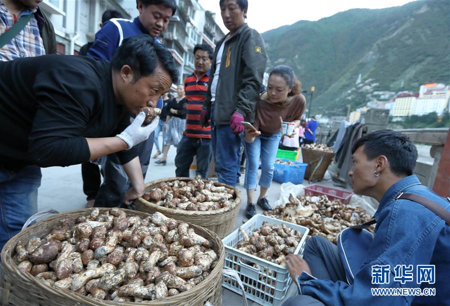 8月14日,在雅江县城,收松茸的客商根据松茸大小、新鲜度等来评定松茸等级。 新华社记者 江宏景摄