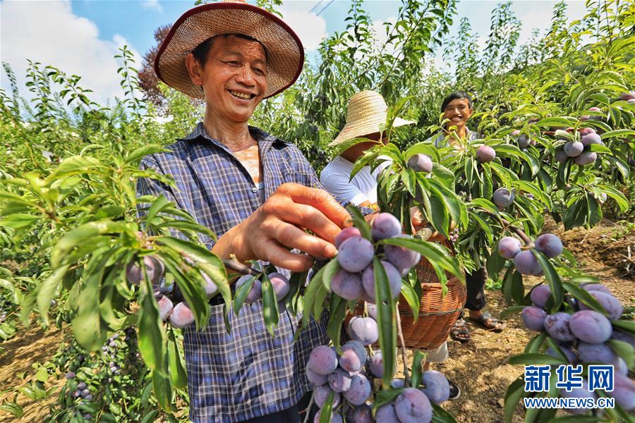近日,贵州省遵义市播州区平正乡的一万多亩脆红李丰收,果农们抢抓农时采摘、分拣李子。据了解,该乡脆红李项目年产值达600万元,有效地带动了当地村民增收致富。