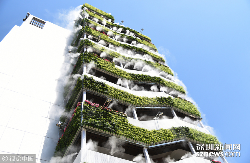 深圳新闻网讯 2018年6月10日,西安,高楼外长满绿植,还萦绕着雾气。这段只有6秒的短视频在抖音火了,网友评论这是“第四代住房”,其实这是西安市众创示范街区的一处安装了智能雾森系统的西北最大户外垂直绿化。
