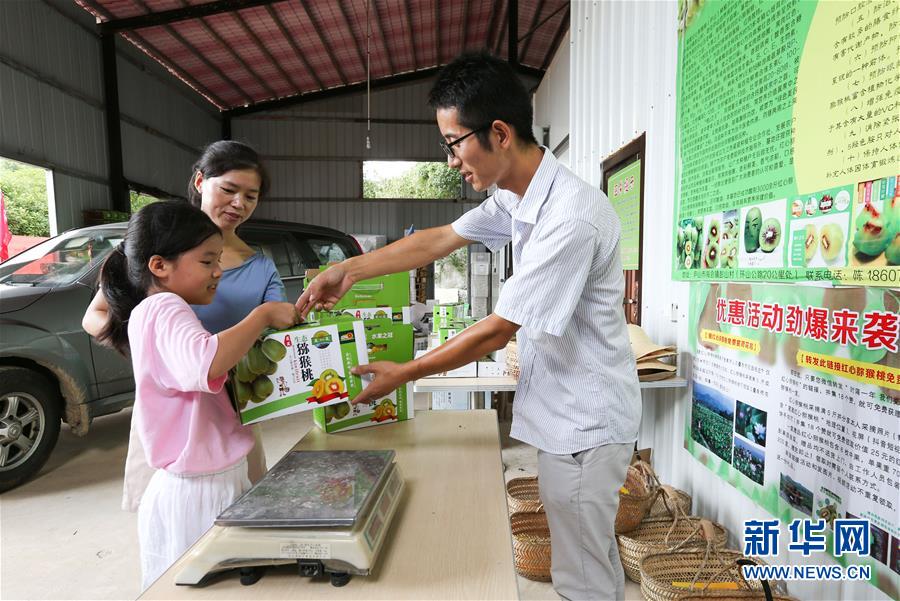 8月30日,游客在位于庐山市海会镇的葳葳种植专业合作社购买红心猕猴桃。 新华社记者尹炣摄