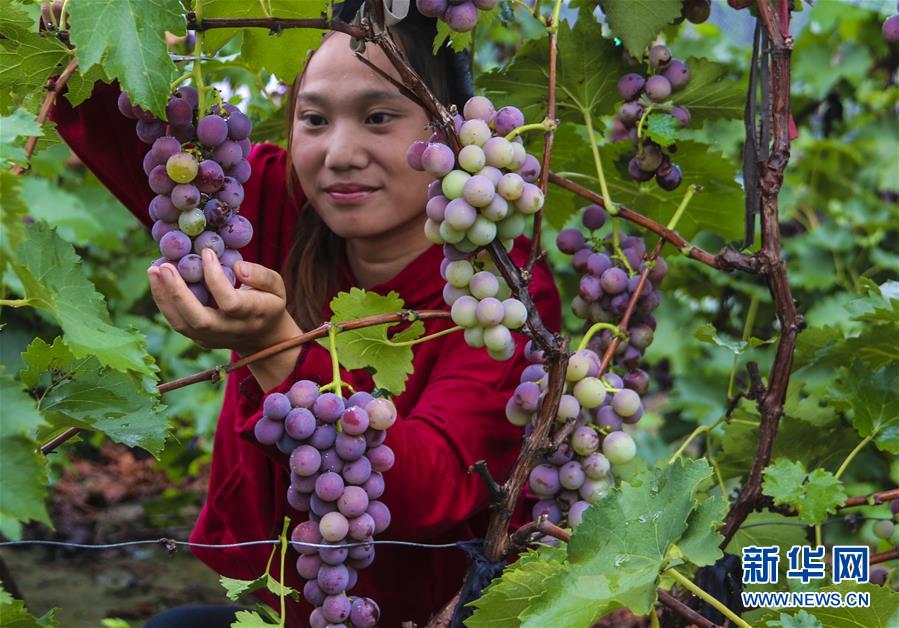8月30日,庐山市海会镇彭山村农民在葳葳种植专业合作社基地内采摘红心猕猴桃。该合作社吸纳周边农民107户,为建档贫困户提供就业岗位。
