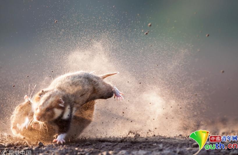 两只棕色仓鼠在决斗,一招一式仿佛功夫大师。