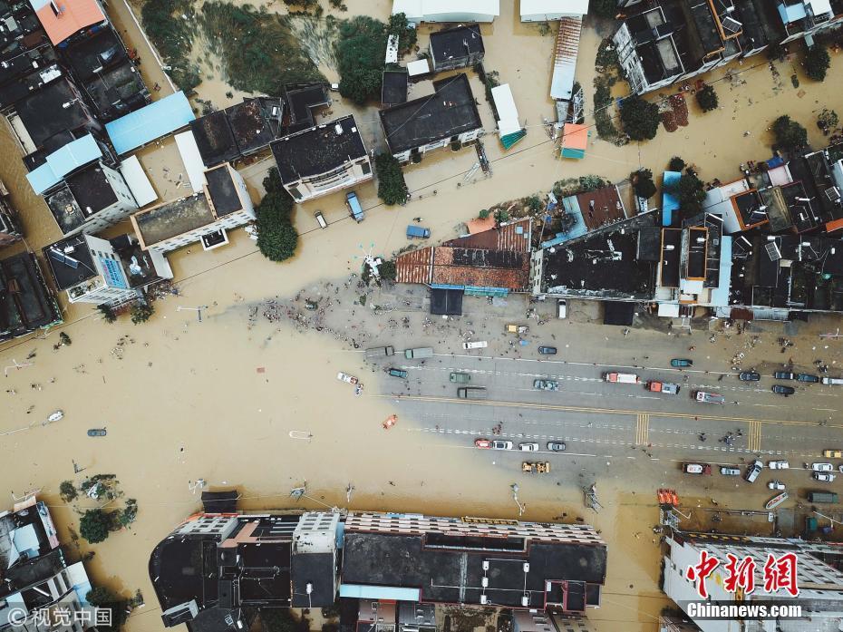 近日,广东出现持续性暴雨天气致使珠三角和粤东部分地市遭受洪涝灾害,多地降雨量破历史极值。暴雨洪涝灾害造成汕头市、惠州市、东莞市、中山市等14个市27个县市区120.8万人受灾。图为2018年9月1日,在广东惠州受灾最为严重的白花镇救灾现场,志愿者、武警、公安等工作人员正奋战在前线。王二摄 图片来源:视觉中国