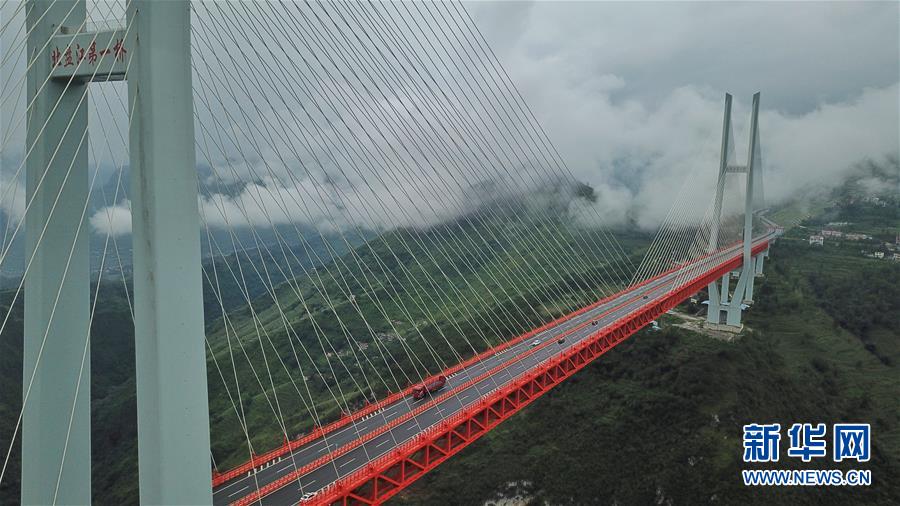 8月9日无人机航拍的北盘江大桥。 新华社记者欧东衢摄