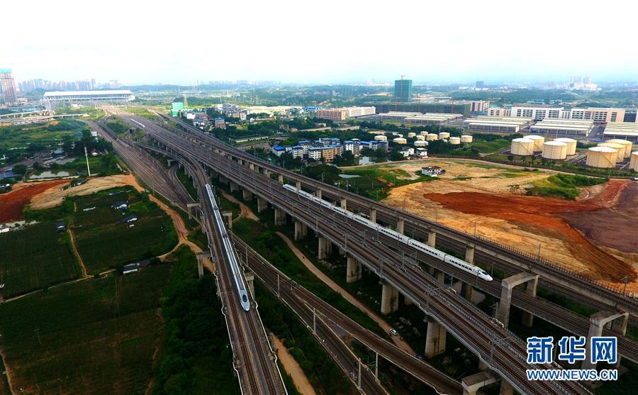 动车行驶在广西南宁市屯里特大桥上(7月1日无人机拍摄)。广西壮族自治区成立60年来,铁路建设发生翻天覆地的变化。来自中国铁路南宁局集团有限公司的数据显示,1958年广西铁路总里程为1346.3公里,如今广西铁路总里程达5191公里。广西与周边相邻省份间实现动车“公交化”开行。此外,北部湾港—重庆班列、东盟海产品冷链班列、“百色一号”果蔬专列等的开通和运营,强化了铁路供给的针对性和有效性。铁路成为助推广西经济社会快速发展的“大动脉”。新华社记者黄孝邦摄