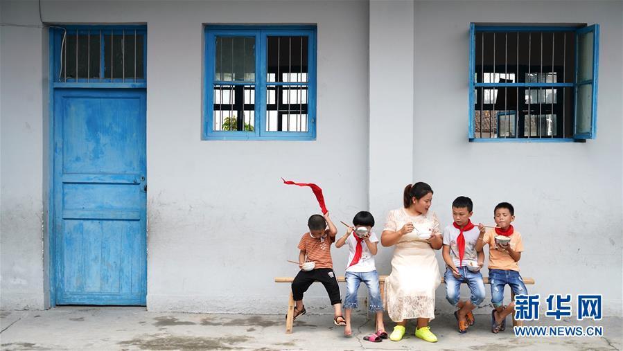 9月4日,江西乐安县金竹畲族乡半坪小学教师陈春英和学生们坐在教室外吃午饭。2014年,身为“90后”的陈春英和其他几位从师范院校毕业的同伴来到深山,开始了特岗教师的生涯。几年过后,陈春英成为唯一留下来的一位。这几年,在山区生活教学的陈春英遇到了很多新鲜事,也收获了很多友谊。她说:“看到学生们健康长大,村民们对我的信赖不断加深,我觉得这样的生活也是一种幸福。”