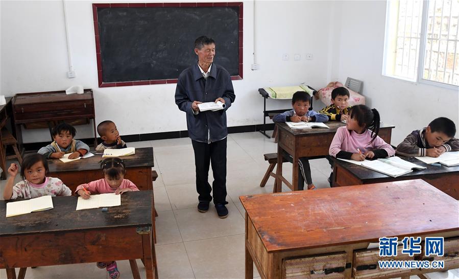 9月5日,云南省禄劝彝族苗族自治县撒营盘镇三蒙村阿依羊小学教师王正祥在给学生们上课。阿依羊小学位于海拔2600米的山间,交通不便,全校只有8名学生。而今年56岁的王正祥既是学校唯一的老师,也在生活上给了孩子们无微不至的关心。1980年,王正祥开始从教,在大山深处一干就是38年。他说:“村里就我一个老师,只要有一个学生,我都要教下去,不让孩子辍学。希望他们像小鹰一样飞出大山,能有更光明的未来。”