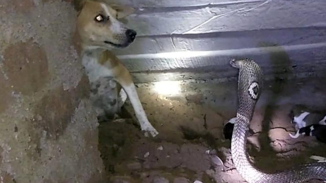 狗妈妈大战眼镜蛇 英勇救出2天大幼 ...