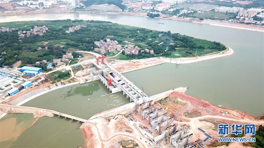 这是西江黄金水道上的南宁市邕宁水利枢纽(5月18日摄,无人机航拍)。 新华社记者 周华 摄