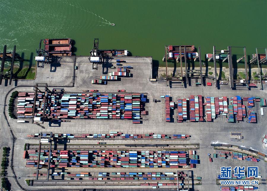 这是西江黄金水道上的贵港罗泊湾集装箱码头(3月9日摄,无人机航拍)。 新华社记者 周华 摄