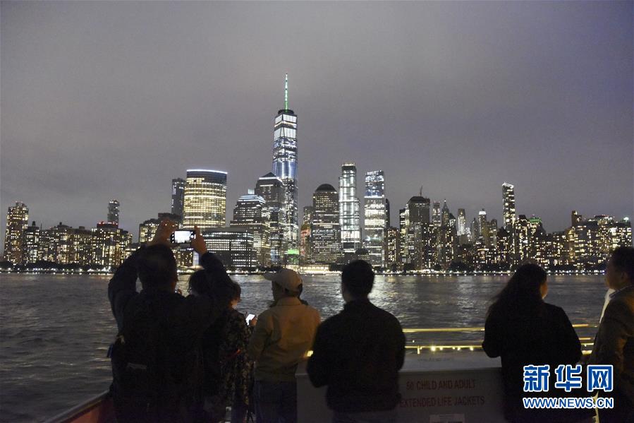 9月23日,在美国纽约,人们在游船赏月活动中拍摄曼哈顿美景。 23日晚,纽约华人社团联合总会等20多个侨团联合主办哈得孙河游船赏月活动。游船从哈得孙河到东河,途经炮台公园、自由女神像、华尔街金融区、联合国大楼等著名景点。 新华社记者韩芳摄