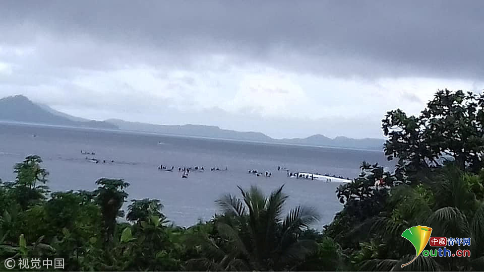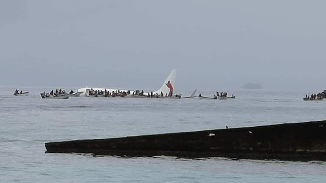 当地时间2018年9月28日,一架飞往巴布亚新几内亚的客机在密克罗尼西亚降落时冲出跑道入海。根据巴新当地媒体报道,目前,机上所有36名乘客及机组人员安全。图片作者:SOCIAL MEDIA