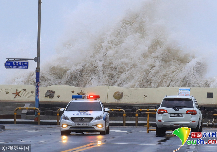 中国青年网北京10月6日电 当地时间2018年10月6日,台风“康妮”影响韩国多地,掀起巨浪,带来大风和降雨。