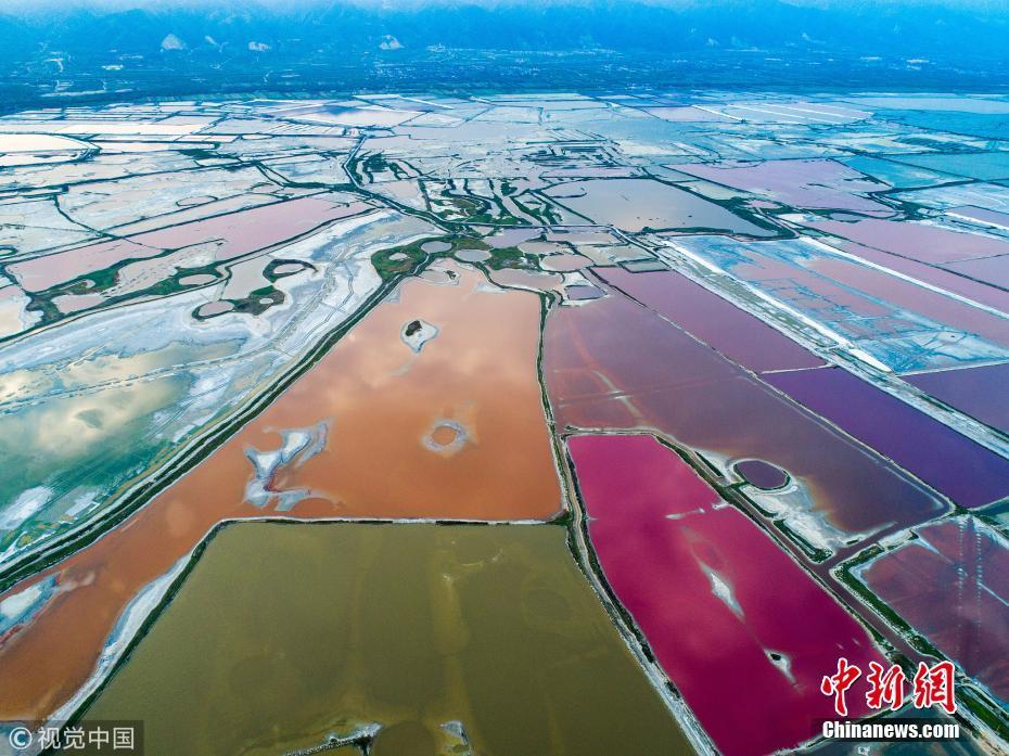 10月6日,山西省运城盐湖景区盐湖秋日美景。入秋以来,随着气温的改变,山西省运城盐湖泛起出色彩斑斓、美不胜收的秋天特有的七彩景致,非常迷人。尚建周 摄 图片来源:视觉中国