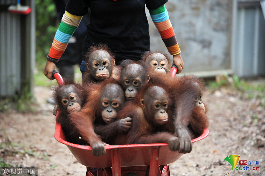 当地时间2018年9月18日,印尼加里曼丹克塔邦,国际动物救援(IAR)猩猩安全与保护中心里。图片作者:Newscom