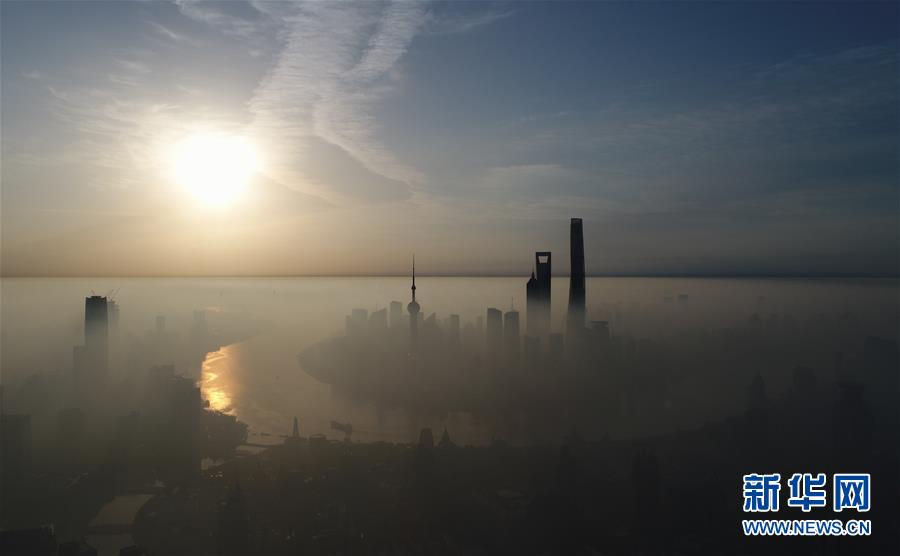 上海浦东陆家嘴晨曦(2017年9月20日无人机拍摄)。新华社记者 丁汀 摄