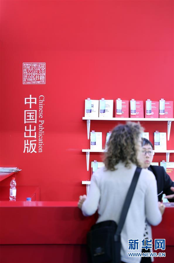 10月10日,在德国法兰克福,一名读者在第70届法兰克福书展中国展区参观。