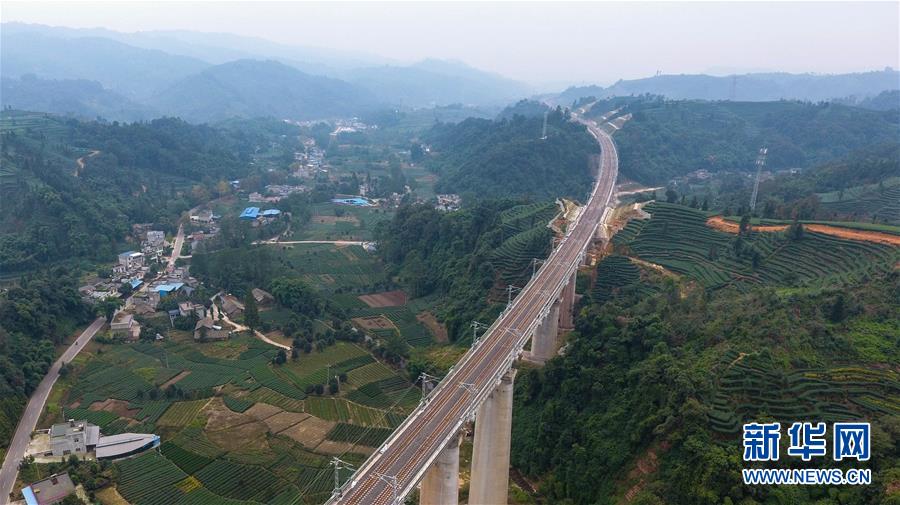这是10月11日无人机拍摄的川藏铁路成雅段一座铁路桥。新华社记者薛玉斌摄