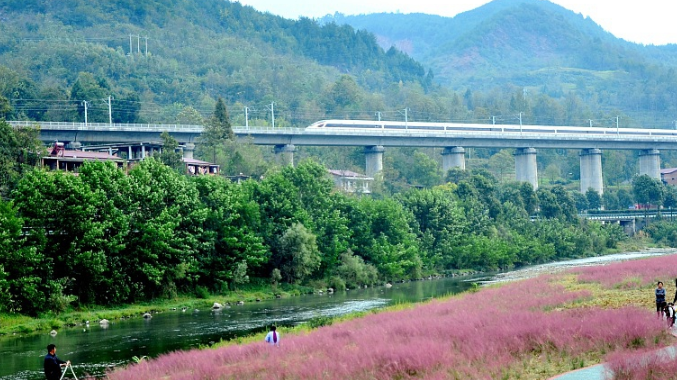 陕西芦苇花海美如画 高铁动车穿行其 ...