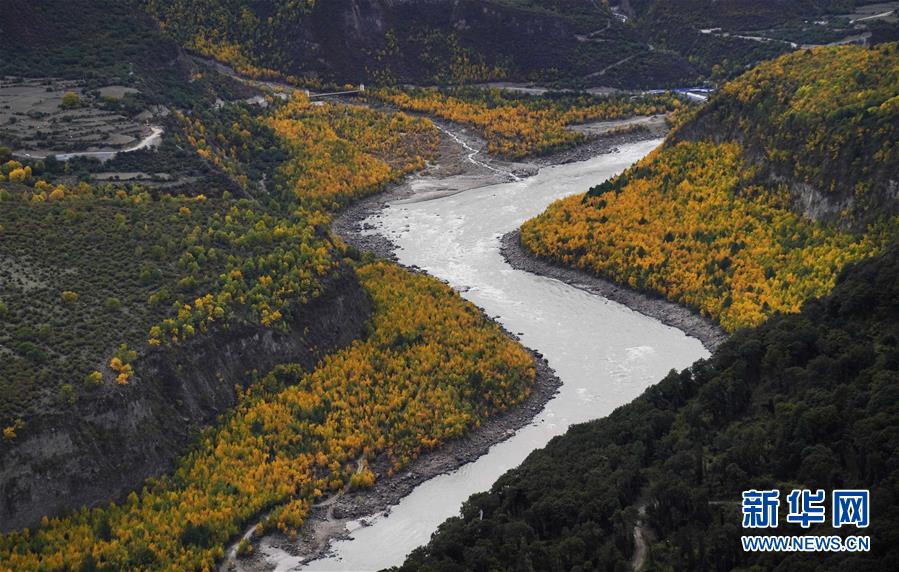 10月20日拍摄的米林县堰塞湖自然过流后的雅鲁藏布江达林村段。 10月19日13时30分,西藏雅鲁藏布江米林县堰塞湖开始自然过流。记者从应急管理部牵头的联合工作组获悉,截至20日7时,雅鲁藏布江堰塞湖坝前水位已下降56米,估算留存水量1.6亿立方米,堰塞湖洪水威胁得到缓解,防洪安全风险大大减轻,并将继续降低。 10月20日,记者乘坐直升机从空中拍摄了雅鲁藏布江堰塞湖自然过流的画面。 新华社记者普布扎西摄
