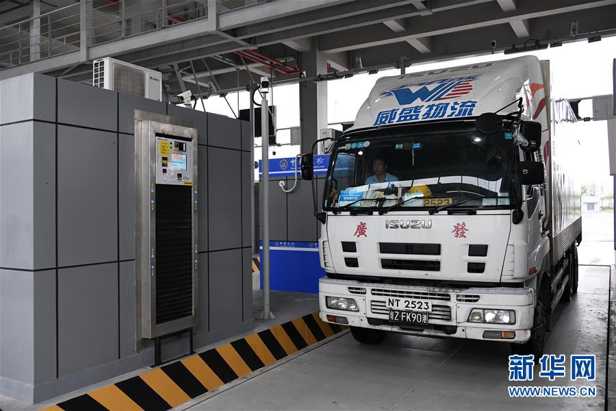 这是货运车辆在进行模拟通关(10月17日摄)。 新华社记者 梁旭 摄