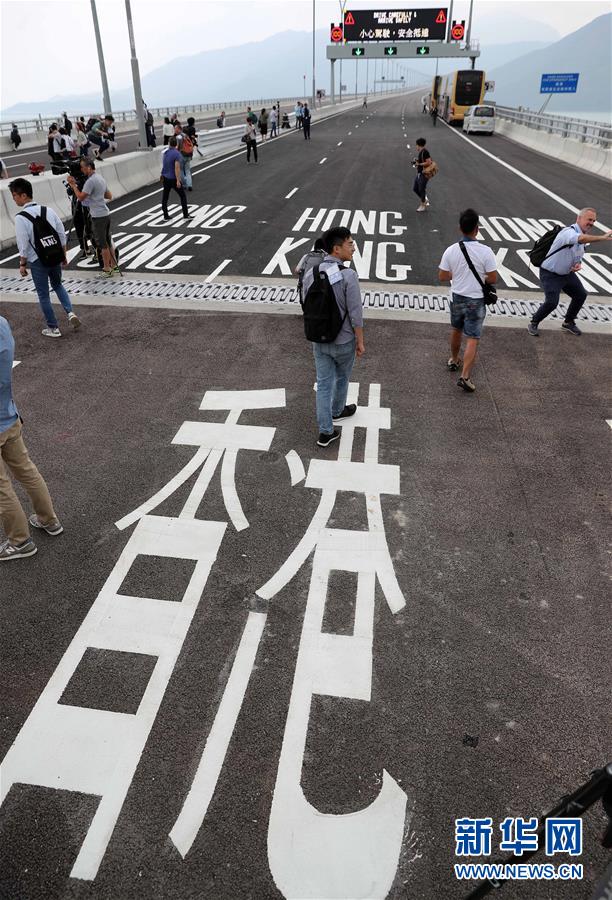 10月19日,媒体记者在港珠澳大桥香港连接路部分参观。 港珠澳大桥开通在即。 新华社记者 李钢 摄