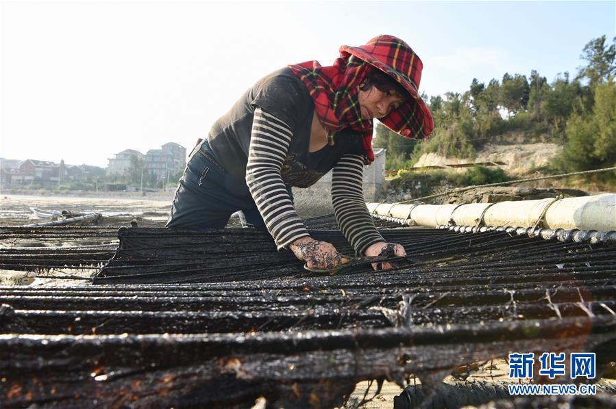 10月24日,福建莆田蒋山村村民在收获紫菜。 新华社记者张国俊 摄