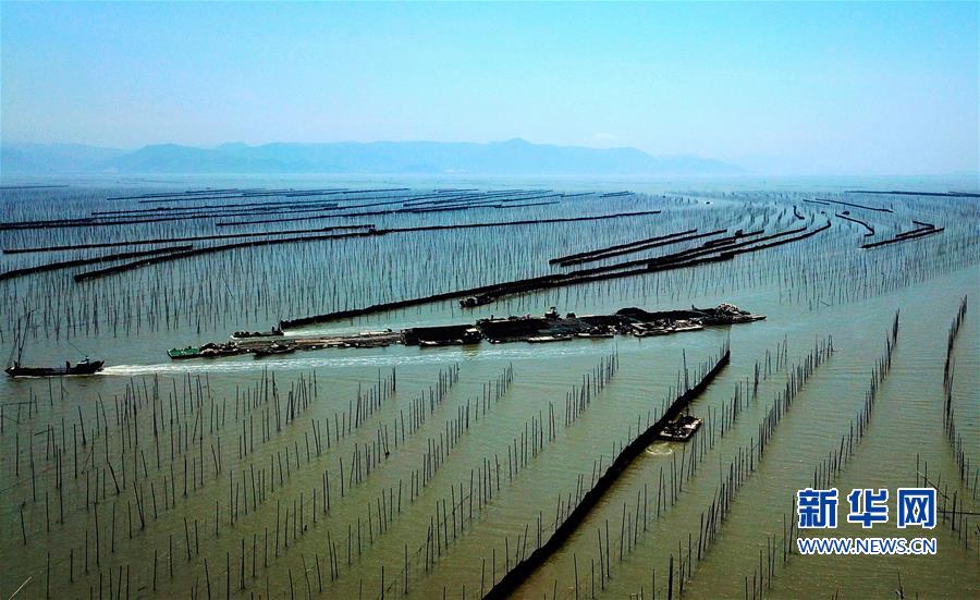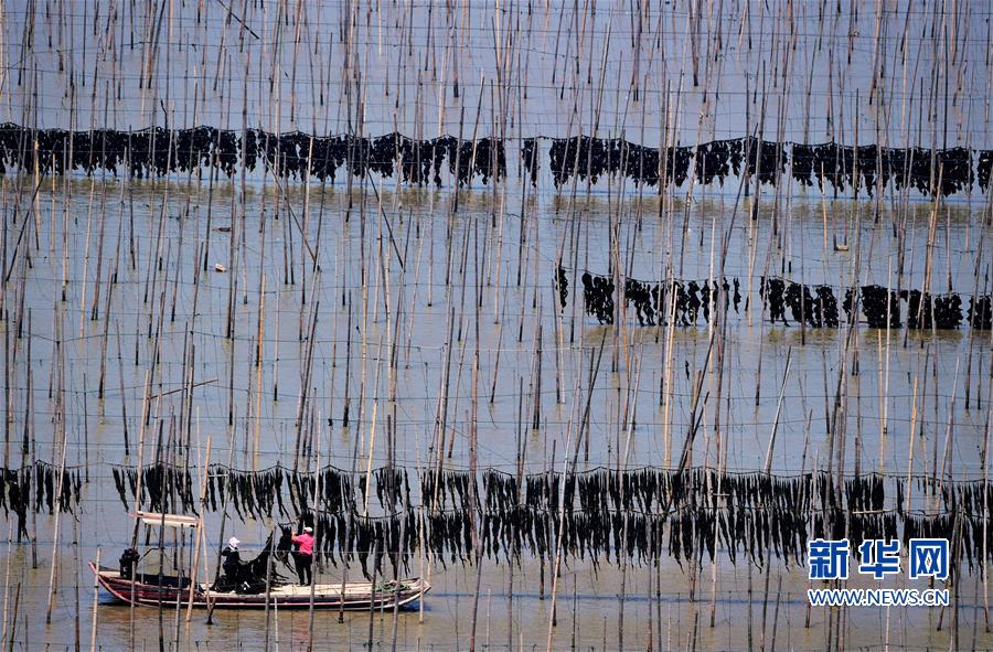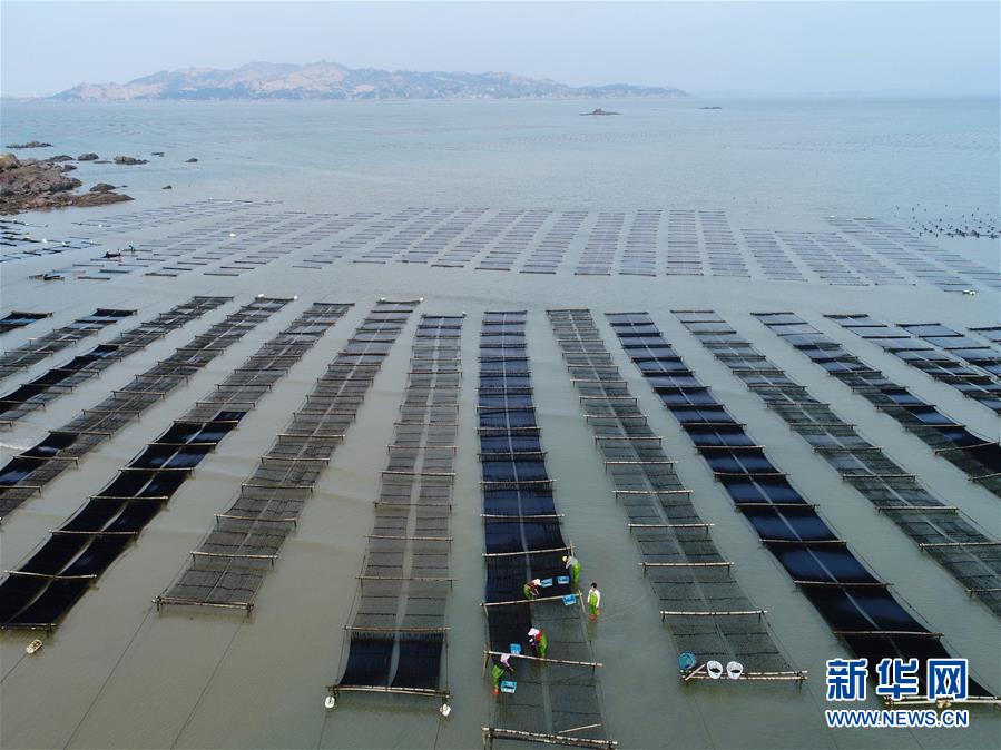 近日,福建省莆田市湄洲湾北岸蒋山村的2000多亩种植紫菜进入收割旺季,当地村民抢收头水紫菜。蒋山村现有200多家紫菜种植户,紫菜种植成为当地村民增收致富的主要产业。