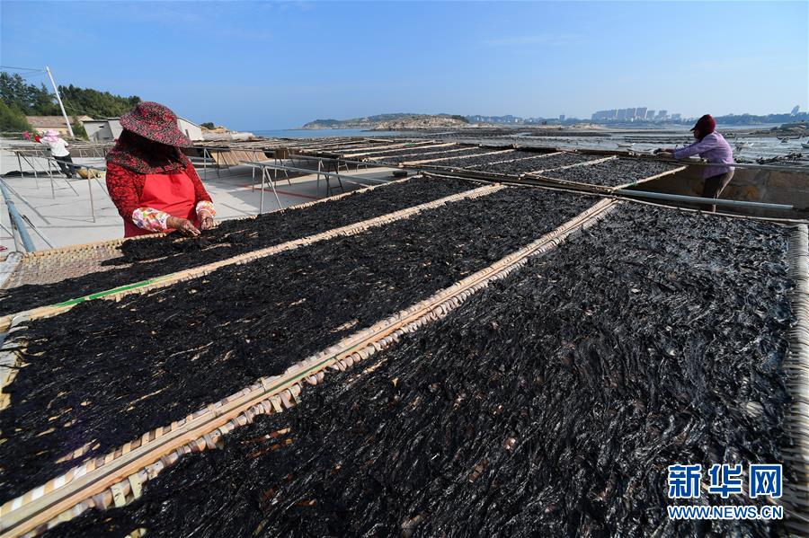 10月24日,福建莆田蒋山村村民在晒紫菜。 新华社记者张国俊 摄