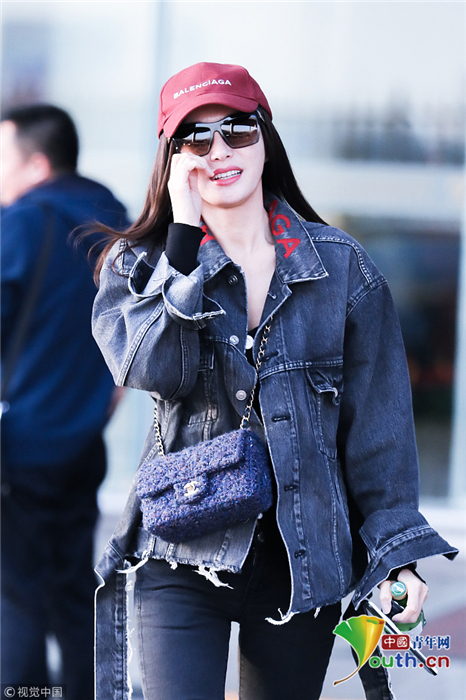 2018年10月24日,北京,“富察皇后”秦岚现身机场。她头戴小红帽,身穿黑色紧身裤显美腿笔直修长,上身穿着牛仔外套青春逼人,边走边甜笑玩“撩发杀”,靓丽吸睛。