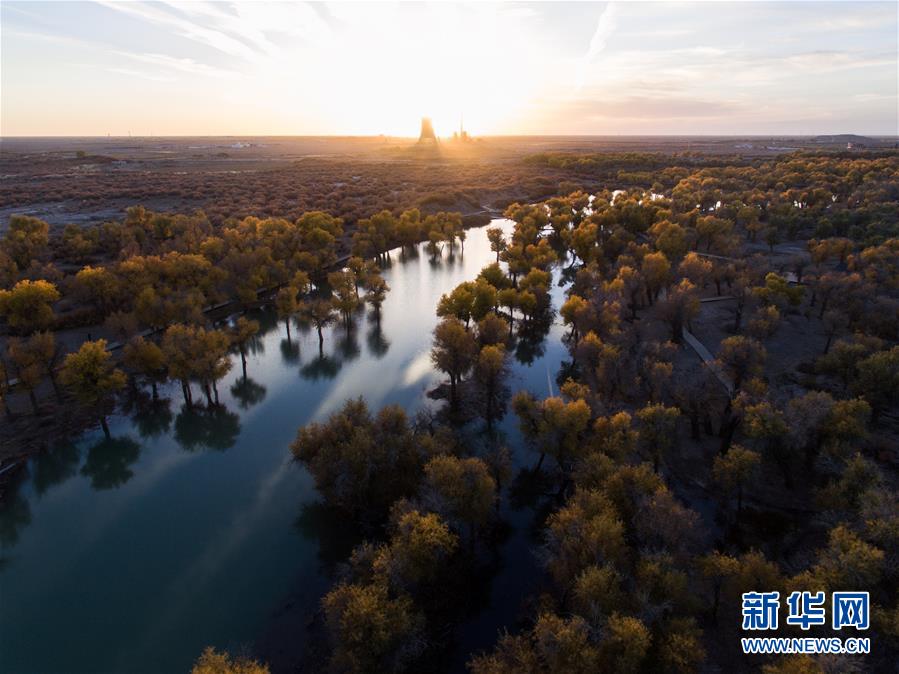 10月中旬以来,新疆天山以南的塔里木河流域胡杨叶片由绿变黄,如同披上了金色外套。 2000年起,塔里木河19次向下游生态输水,累计下泄生态水76.2亿立方米。多年的持续输水结束了塔里木河下游河道连续断流30年的历史,缓解了流域生态退化的被动局面,塔里木河下游动植物物种显著增加、水环境得到有效改善。
