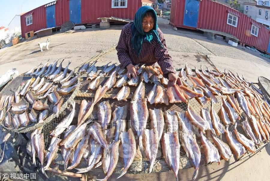 讯 金秋时节,江苏连云港市沿海秋捕迎来丰收,渔民们将捕获的鲳鱼、鳗鱼、小黄鱼、乌贼等经过腌制、晾晒加工成鱼干,海岛处处呈现出一派丰收景象。