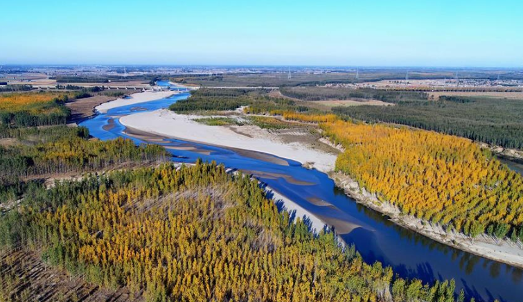 深秋滦河两岸色彩斑斓 宛如画境