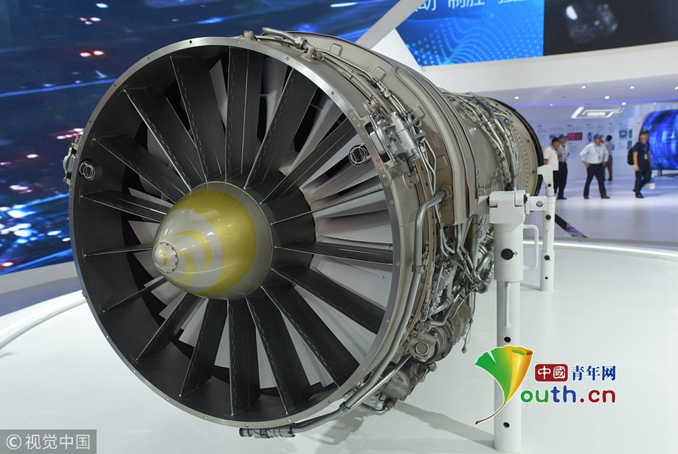 国产新型涡扇发动机“太行发动机”亮相208珠海航展,这款发动机也是太行发动机最新改进型号,目前已经开始装备中国空军的主力战机。太行发动机是中国首个具有自主知识产权的高性能、大推力、加力式涡轮风扇喷气发动机也叫涡扇10系列发动机,它结束了国产先进涡扇发动机的空白。采用大推力涵比及全自动数字化控制系统,推力达到12000KGF-14000KGF(公斤力9.8N/Kg)。图片作者:龙巍/视觉中国