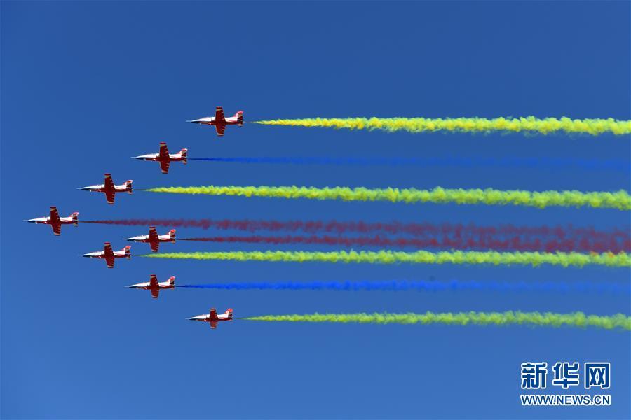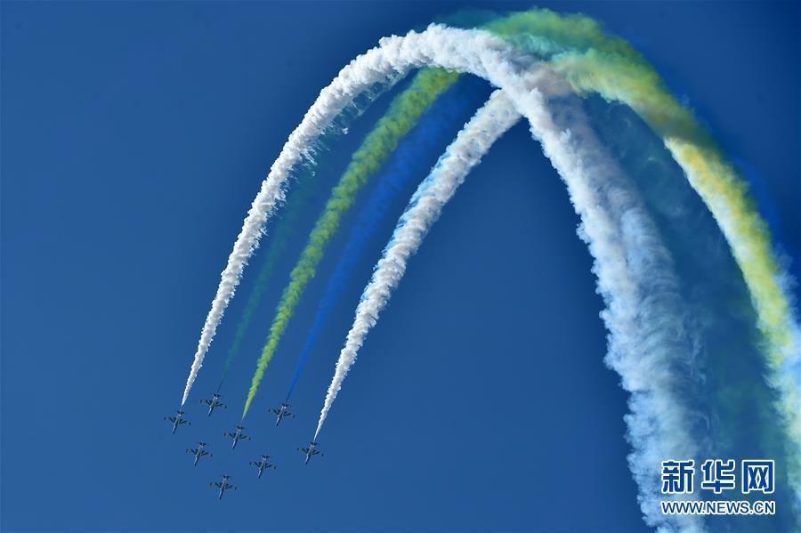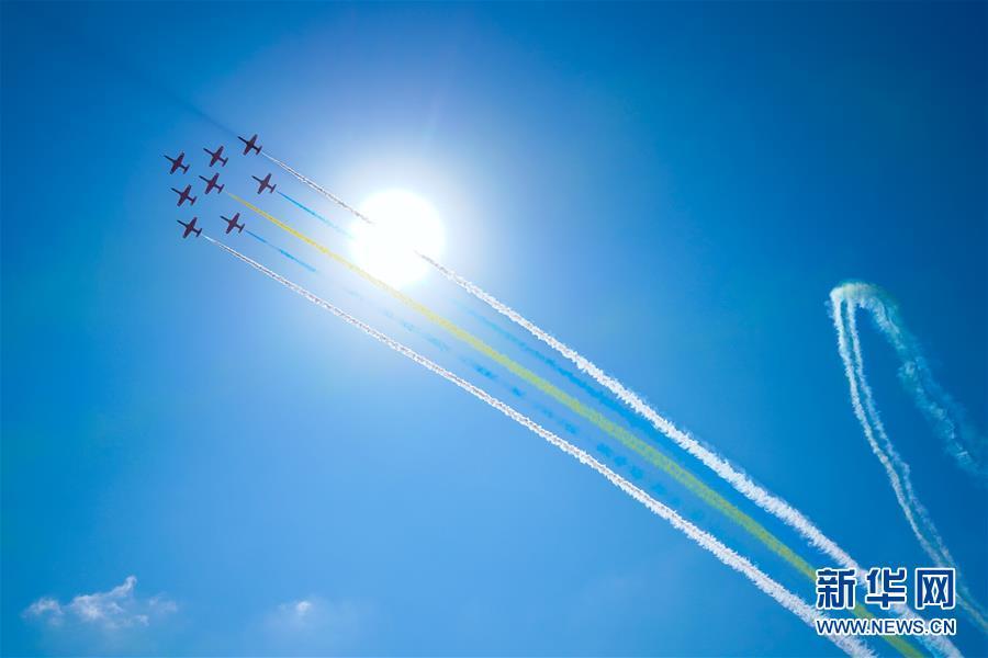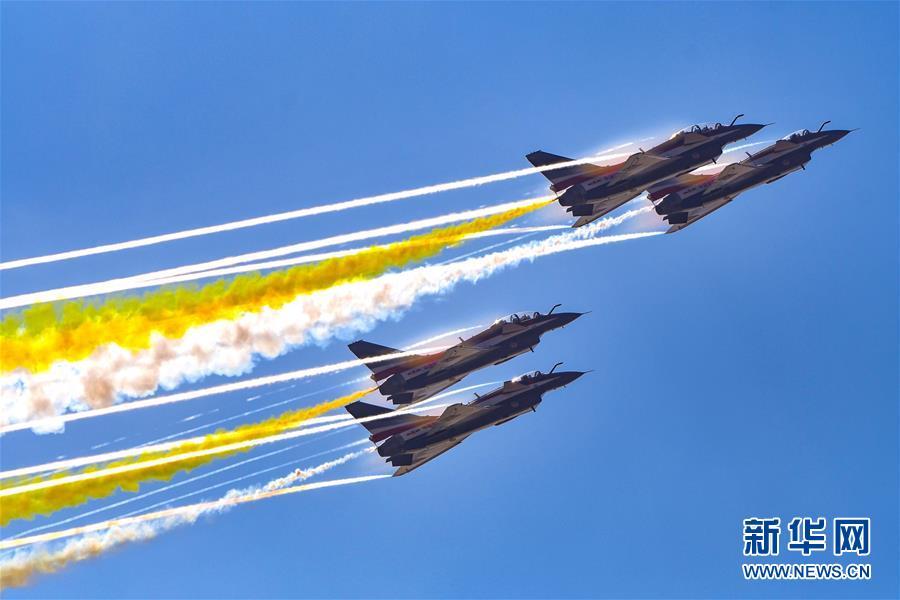 11月6日,中国空军八一飞行表演队在航展现场进行飞行表演。当日,第十二届中国国际航空航天博览会在珠海开幕。 新华社记者杨光摄