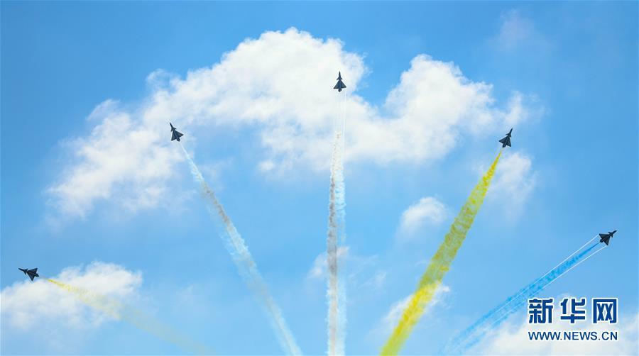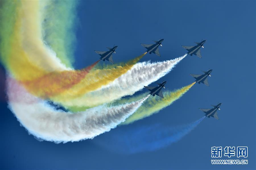 11月6日,中国空军八一飞行表演队在航展现场进行飞行表演。当日,第十二届中国国际航空航天博览会在珠海开幕。 新华社记者刘芳摄