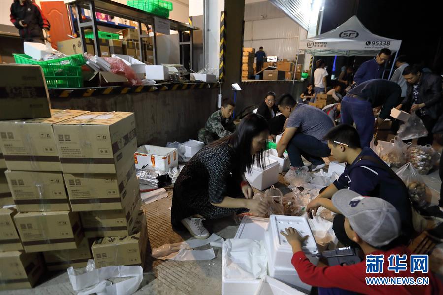 8月14日,在雅江县城顺丰快递办事处,不少人准备邮寄新鲜松茸。 新华社记者 江宏景摄