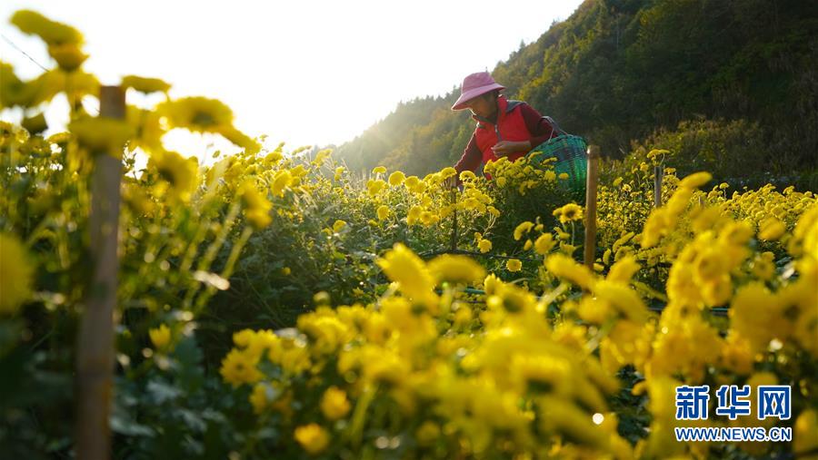 11月8日,婺源县思口镇农户在采摘皇菊。