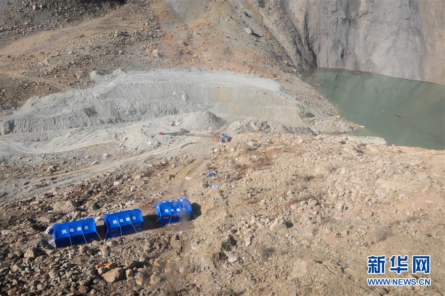 11月12日,金沙江堰塞湖水通过泄流槽。