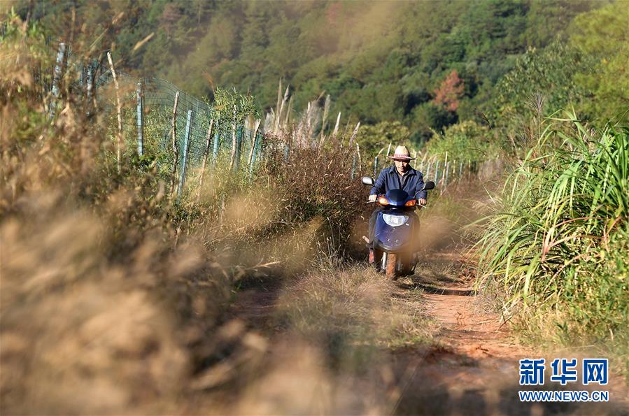 舒港发骑着电动车去查看自家种植的西洋参(10月27日摄)。