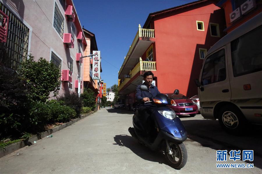 舒港发骑着电动车行进在村子里(10月28日摄)。