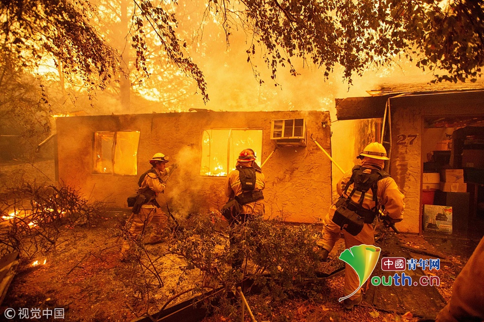 自8日美国加利福尼亚州北部天堂市“坎普”山火爆发以来,这场大火已经持续将近一周。