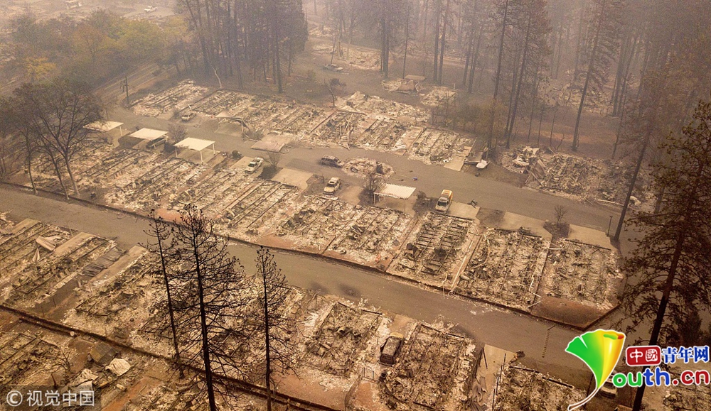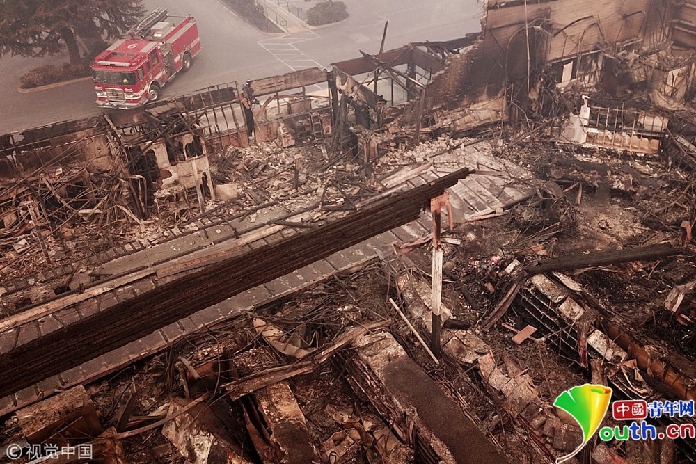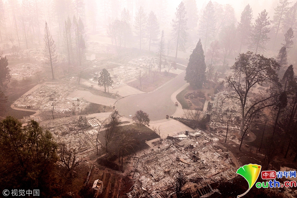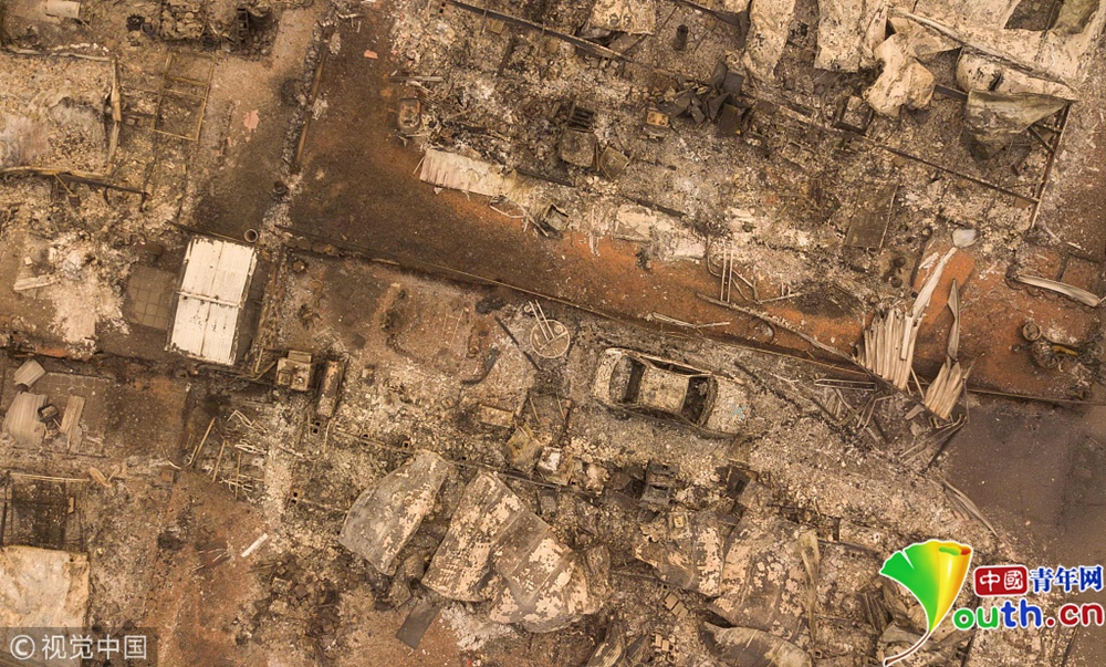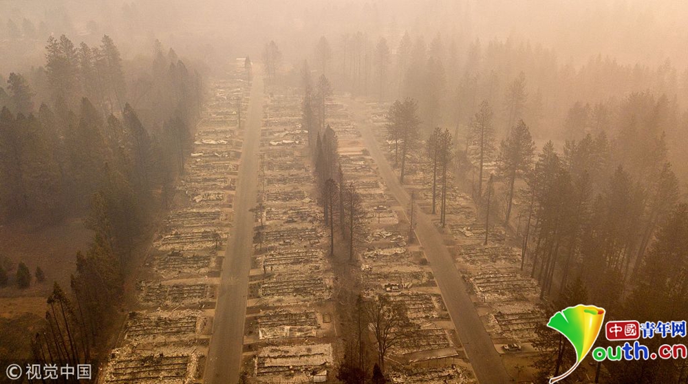 天堂变“地狱” 航拍加州山火肆虐社区似墓地